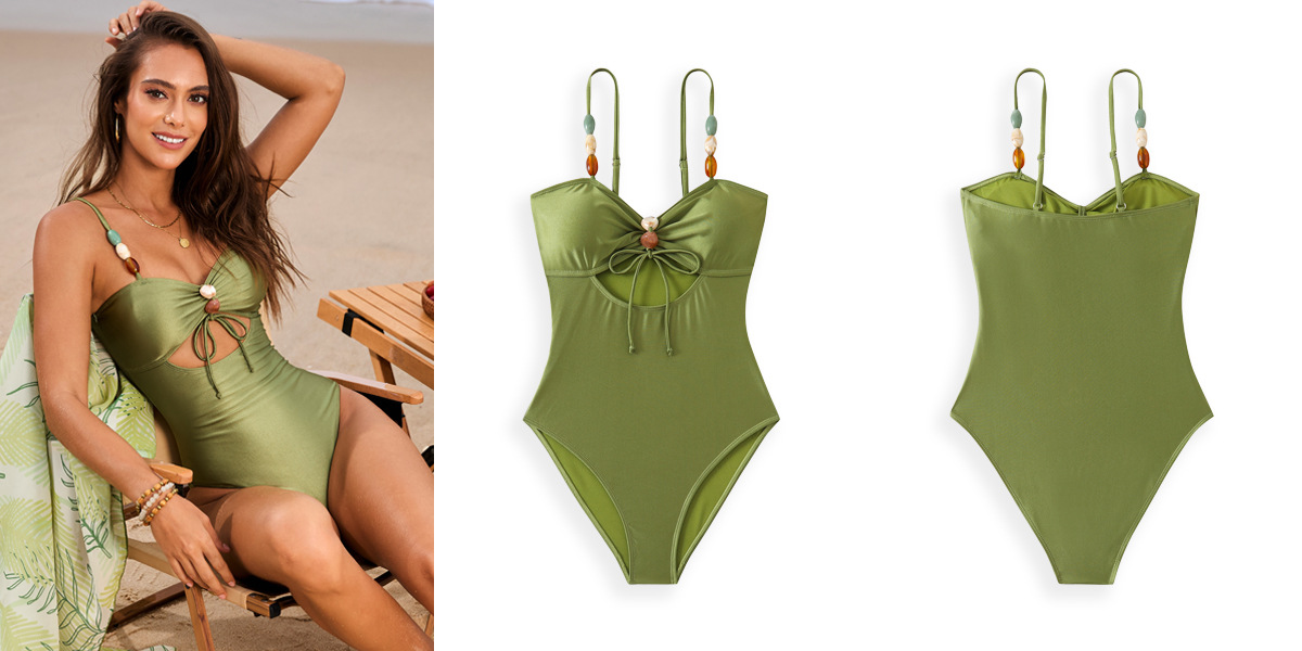 New Glossy Beaded One Piece Swimsuit with Cover Up Sarong